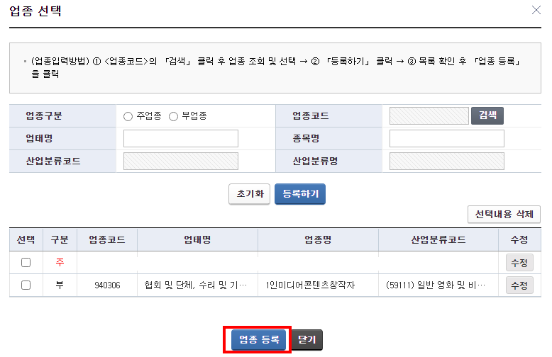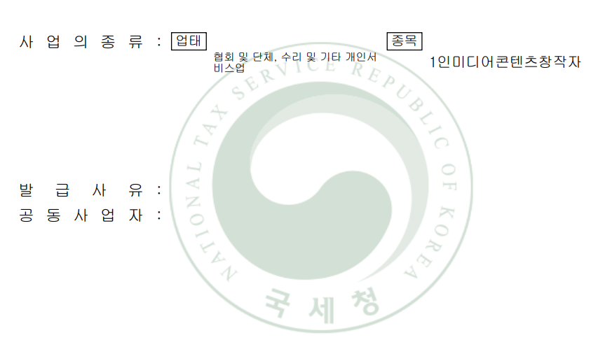 | 940306 | 기타자영업 | 1인미디어콘텐츠창작자 | 면세 |
