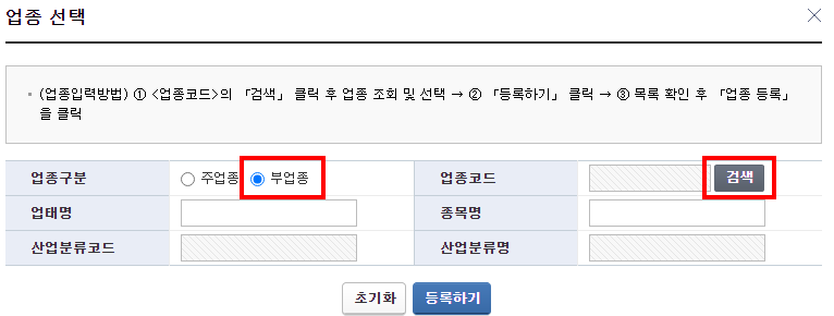 홈택스에 나와있는 업종코드별 적용범 및 기준을 보면