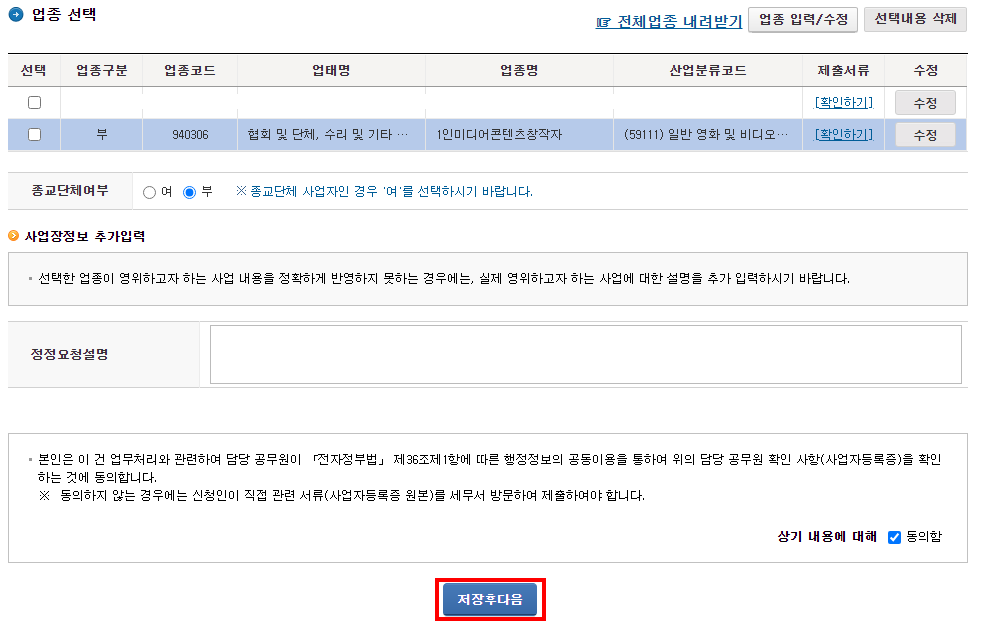 저는 애드센스하면서 따로 인력을 사용하는 것이 아니니 1인미디어컨텐츠창작자로 업종을 추가합니다.