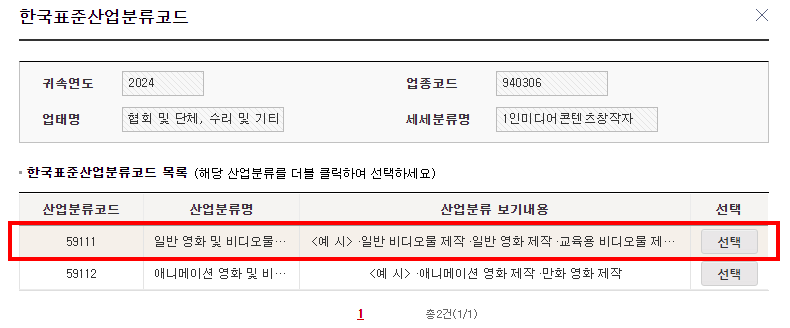 940306 | 기타자영업 | 1인미디어콘텐츠창작자 | 면세 |