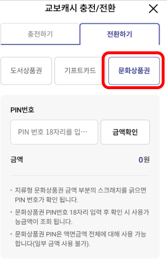 전환하기에서 문화상품권 선택.