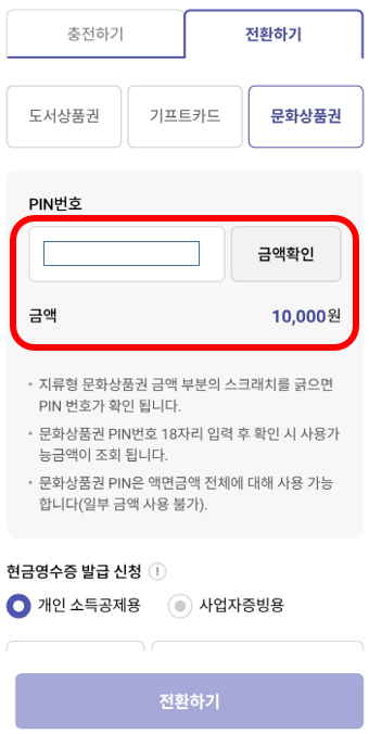 전환하기에서 문화상품권 선택.