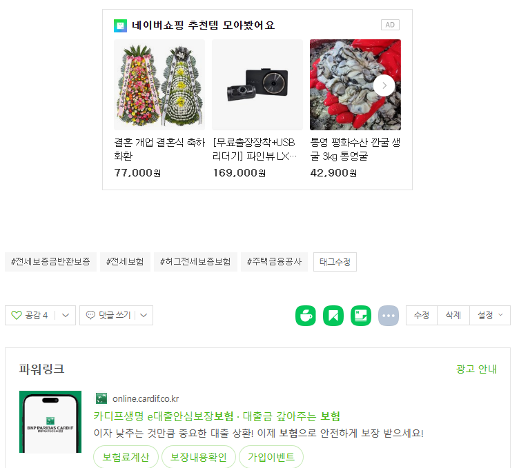 포스팅 글 본문을 보니 애드포스트 광고3개가 게재된 것을 확인할 수 있었습니다.