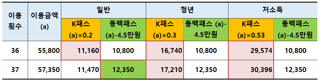 동백패스 이용자가 Kpass 가입하면 K패스 동백패스 혜택을 자동 비교해서 더 큰 금액으로 환급됩니다.