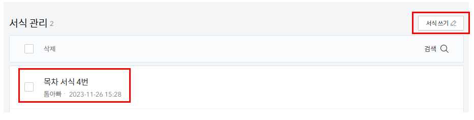 서식을 쓰고 저장을하면 저장된 서식이 생성된 것이 보입니다.
