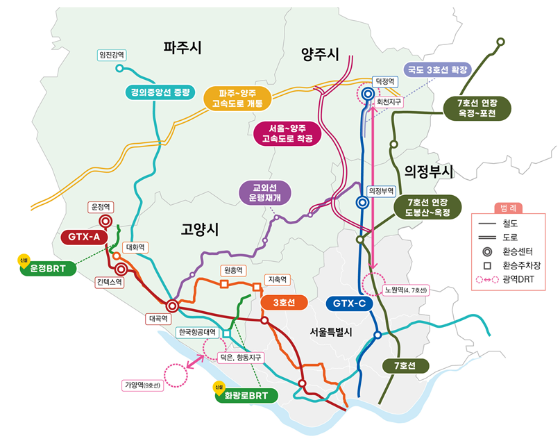GTX A , 교외선, 7호선 옥정 포천 연장으로 고양시 파주 의정부 양주시 서울 출퇴근 30분대!