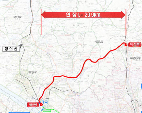 대곡역에서 의정부역으로 가려면 현재 대중교통으로는 1시간30분 정도 걸리는데, 교외선이 개통하면 50분정도 소요될 전망입니다.